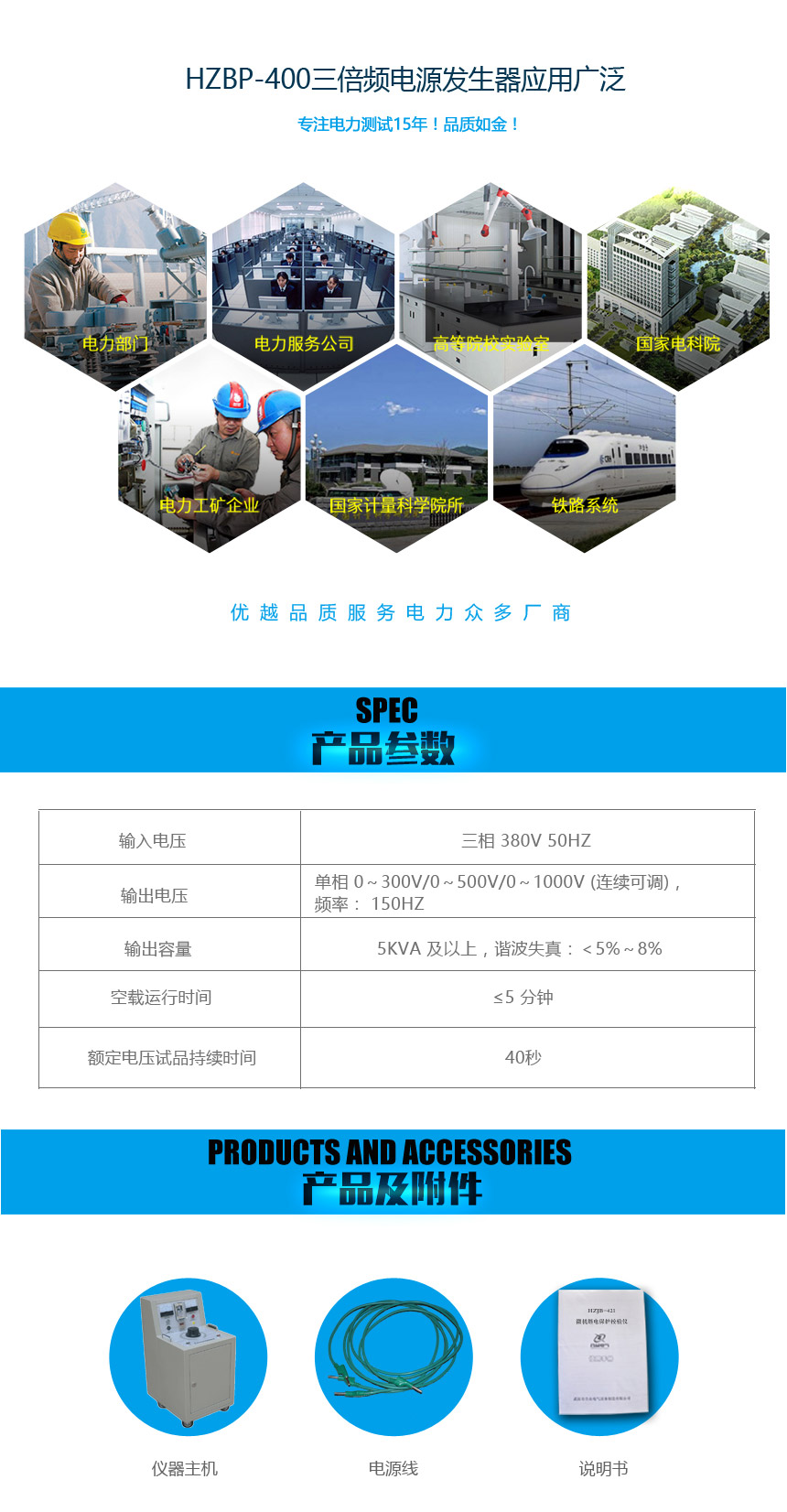 HZBP-400三倍頻電源發(fā)生器作者:合眾電氣發(fā)布時(shí)間:2016-10-19瀏覽量:10520 次字體顯示:【大】【中】【小】 上一篇: HZBP-412多倍頻電壓發(fā)生器下一篇: ZTD-601接地引下線(xiàn)導(dǎo)通電阻測(cè)試儀