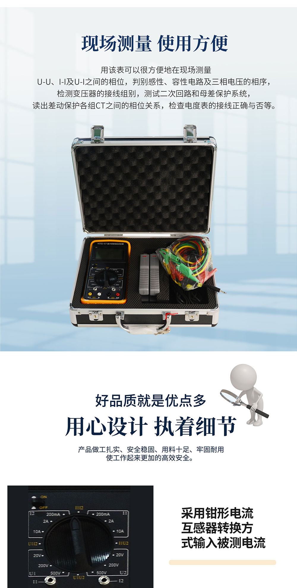產品別名: 相位表、雙鉗相位表、雙鉗相位伏安表、鉗形相位表、鉗形相位伏安表、數字雙鉗相位表、數字式雙鉗相位表、低壓伏安相位檢測表、手持式數字雙鉗相位伏安表、雙鉗式數字相位表、 雙鉗數字式相位表、雙鉗式伏安相位表、雙鉗伏安相位表、數顯雙鉗相位表。