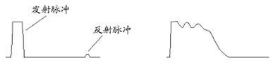 (7)增益調(diào)節(jié):用于調(diào)節(jié)輸入、輸出脈沖幅度大小,使用時(shí)應(yīng)根據(jù)屏幕顯示波形進(jìn)行調(diào)節(jié)。調(diào)節(jié)過(guò)小時(shí),脈沖反射很小,甚至無(wú)法采樣,如圖3。調(diào)節(jié)過(guò)大時(shí),反射脈沖相連與基線無(wú)交點(diǎn)甚至基線會(huì)變成斜線,如圖4。一般采樣前,增益調(diào)節(jié)旋鈕旋轉(zhuǎn)1/3左右,然后根據(jù)波形大小再進(jìn)行調(diào)節(jié),重新采樣。