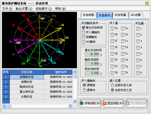 微機(jī)繼電保護(hù)測(cè)試儀(鍵盤(pán)版)設(shè)置狀態(tài)條件,微機(jī)繼電保護(hù)測(cè)試儀(鍵盤(pán)版)試驗(yàn)步驟3:設(shè)置狀態(tài)條件。