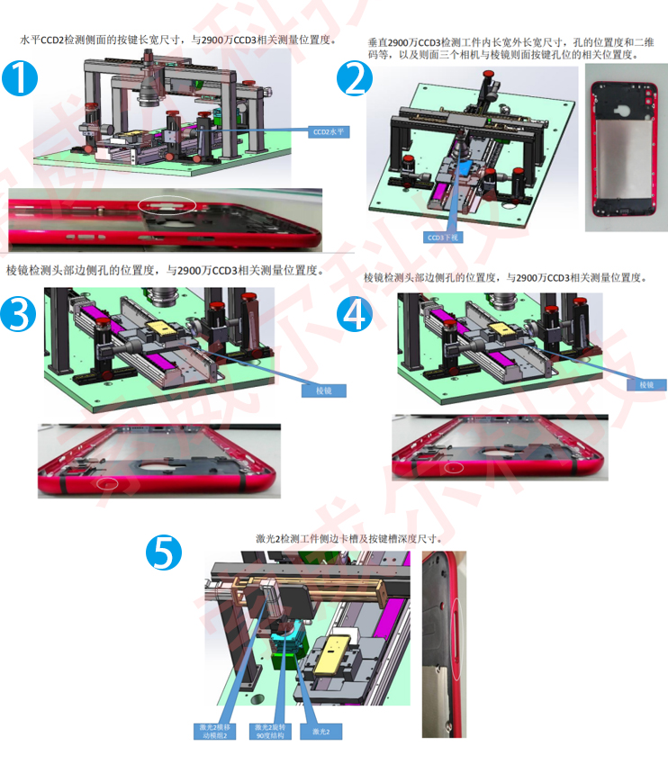 檢測方式:設備需采用CCD+激光組合,對手機電池蓋外觀進行掃描成像,對圖像進行處理,檢測缺陷類型。可主要用于全檢殼體組件結構特征的長度、寬度、孔徑、高度、位置度、平面度。