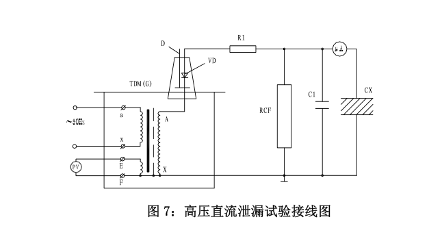 直流耐壓或泄漏試驗(yàn)時(shí)試驗(yàn)變壓器的接線方法