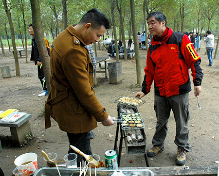 武漢的冬季已經(jīng)充滿寒意,特別是剛下過(guò)雨之后。但在農(nóng)耕年華卻是另外一番景象。幾組朝氣蓬勃充滿活力的團(tuán)隊(duì)正積極地準(zhǔn)備著燒烤的食材。大家積極配合,一起動(dòng)手,忙中透著輕松快樂(lè)的氣氛。